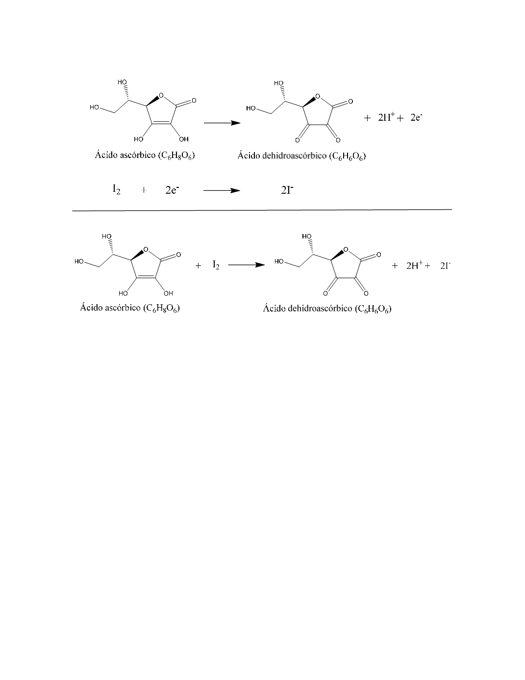 igual a los moles de ácido ascórbico oxidados, es decir, el yodo es reducido a yoduro